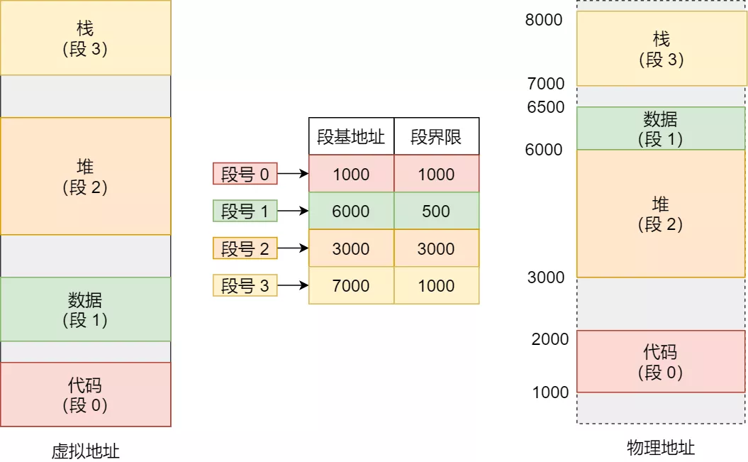 - 通过段表实现逻辑地址和物理地址的映射关系